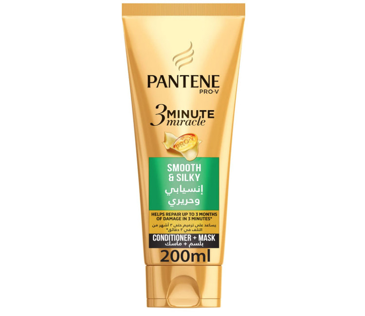 ماسک + نرم کننده میراکل 3 دقیقه ای پنتن برای موهای وز مدل Pro-V 3-Minute miracle Smooth & Silkyموهای خشک و وز Pantene Pro-V 3 Minute Miracle Smooth & Silky Conditioner for Frizzy Hair, 200 ml