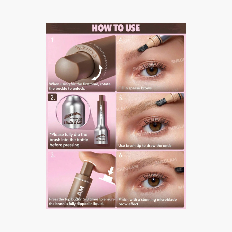 هاشور ابرو SHEGLAM Brow-Fection Angled Brush & Dip محصولی حرفهای برای طراحی، فرمدهی و پر کردن ابروهاست. این هاشور دارای فرمول مایع مات و برس زاویهدار دقیق است که به شما امکان میدهد خطوطی ظریف و طبیعی شبیه به تارهای واقعی ابرو ایجاد کنید.